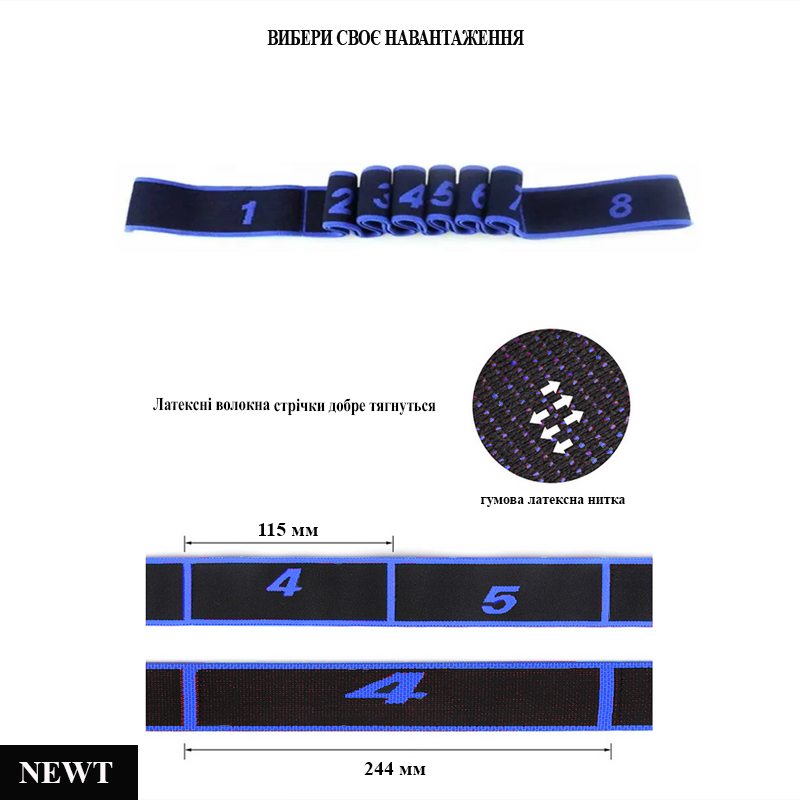 Кожна частина резинки має своє власне індивідуальне навантаження, що дає змогу вам обирати рівень опору, який найбільше відповідає вашим потребам і цілям тренувань. Залежно від ваших фізичних можливостей і рівня фізичної підготовки, ви можете почати з більш легких частин і поступово переходити до більш важких, щоб збільшити інтенсивність тренувань.