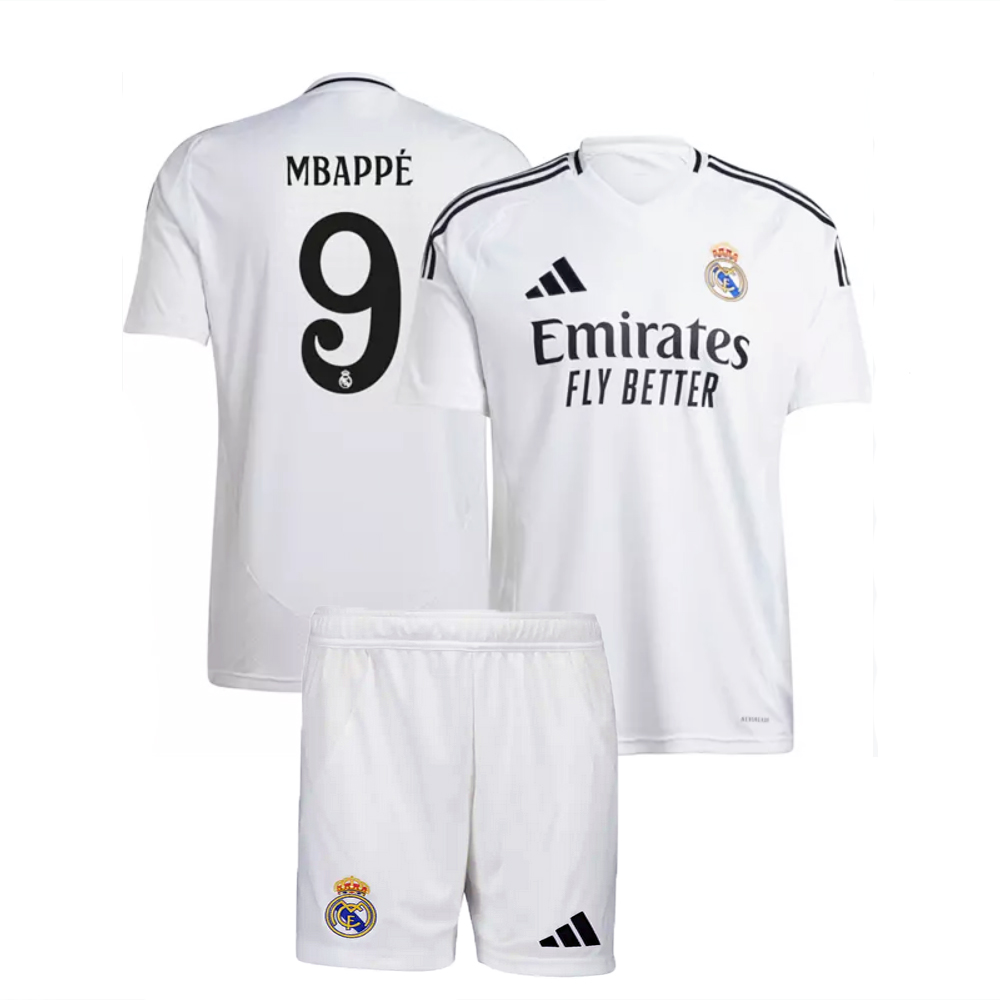 Герб команди Real Madrid велично прикрашає груди, будучи символом прихильності та підтримки клубу. На задній частині футболки виділяється номер 9 легендарного гравця Мбапе (Mbappe), що робить цю форму особливо цінною для шанувальників як команди в цілому, так і цього талановитого футболіста.
