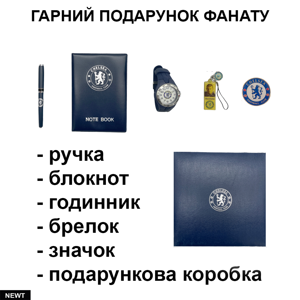 Усі предмети упаковані в подарункову коробку, що робить набір чудовим презентом для будь-якого фаната Chelsea (Челси).