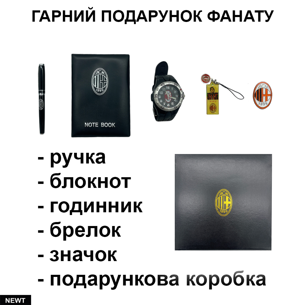 Усі предмети упаковані в подарункову коробку, що робить набір чудовим презентом для будь-якого фаната FC Milan (ФК Мілан).