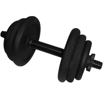 Комплектація: 2 диски по 3 кг сталеві, 2 диски по 2 кг сталеві, 2 диски по 1 кг сталеві, гриф 35 см – сталевий, покритий ударостійким пластиком, 2 гайки “Вейдера”. Колір: чорний. Вага: 12,5 кг.