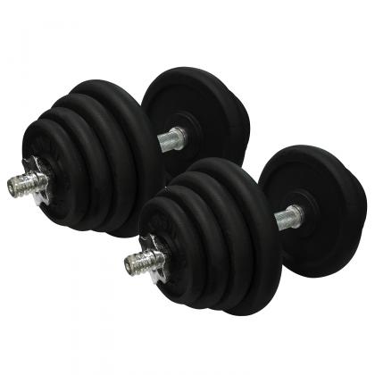 Комплектація: 2 грифа – довжина 40 см; 4 гайки; 4 диски по 5 кг, 4 диски по 3 кг, 4 диски по 2 кг, 4 диски по 1 кг.