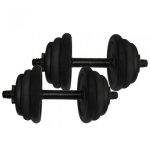 Комплектація: 4 диски по 3 кг сталеві, 4 диски по 2 кг сталеві, 4 диски по 1 кг сталеві. Гриф сталевий, покритий пластиком, довжиною 35 см – 2 шт., 2 гайки “Вейдера”. Колір: чорний. Вага: 25 кг.
