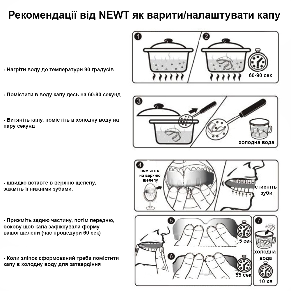 Капа зроблена із силікону, що забезпечує максимальний комфорт і захист. Вона може мати різну форму і розмір, щоб ідеально підходити до форми зубів і рота.