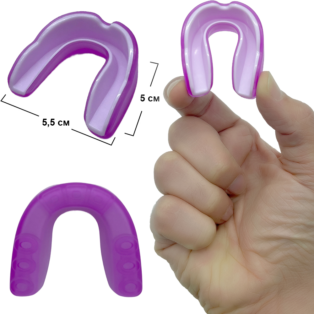Капа зроблена з подвійного матеріалу EVA термопласту, який ще більше забезпечує максимальний комфорт і захист. Вона може мати різну форму і розмір, щоб ідеально підходити до форми зубів і рота.