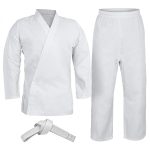 Кімоно для карате (айкідо) Newt Energy біле+пояс, зріст 120 NE-KIM-K-120 – чудовий вибір для спортсменів, ідеально підходить для тренувань або змагань. Кімоно має оптимальну щільність тканини 240 г/м², також тканина добре “дихає”. Дизайн куртки для карате Y-Vent забезпечує ідеальну посадку по фігурі. Кімоно добре прошито і посилено у всіх потрібних місцях. Штани кімоно для зручності мають гумку. Ця форма для бойових мистецтв дуже зручна і забезпечує необмежений діапазон рухів у всіх площинах руху, для низьких стійок і високих ударів, перекидів.