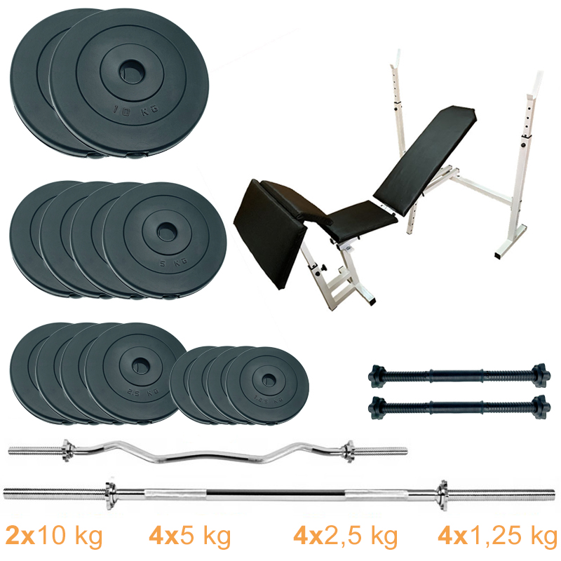Лава для жиму з набором штанг і гантелей Newt ProGym Scott Set Pro 70 kg – універсальний силовий набір який підійде як новачкові, так і професіоналам. До складу набору входять різні грифи (W- образний гриф, прямий гриф і гантельние грифи) і різні диски, завдяки чому Ваші тренування стануть ще ефективніше! Збирайте гантелі або штангу зі зручною для вас вагою!