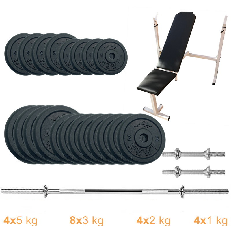 Лава для жиму з набором штанга + гантелі металеві Newt Gym Set-SKH Home 67 кг