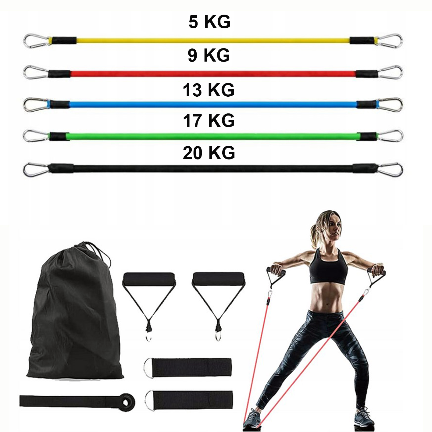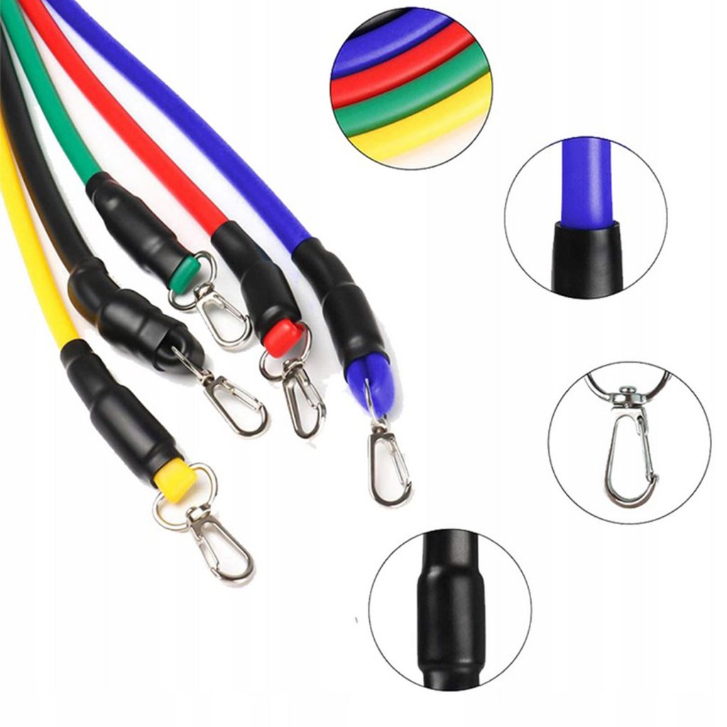 У наборі 5 трубчастих еспандерів різного опопру від легких для тих, хто тільки починає працювати над своєю фігурою, до сильних для досвідчених користувачів. Найбільш просунуті можуть комбінувати кілька гум разом, щоб максимізувати силу опору і зробити тренування справжнім випробуванням. Це ж так просто!