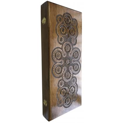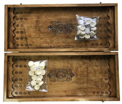 Ідеально підходять для швидкої гри в компанії друзів і колег по роботі. Такі нарди прийнято дарувати людям зайнятим, які час від часу знаходять можливість зіграти з друзями в улюблену всіма гру. Прекрасні дерев’яні нарди з вензельним візерунком на лицьовому боці гральної дошки і красивим оформленням ігрового поля, принесуть чимало задоволення для нового власника. Всі роботи виконані вручну, що робить нарди унікальними.