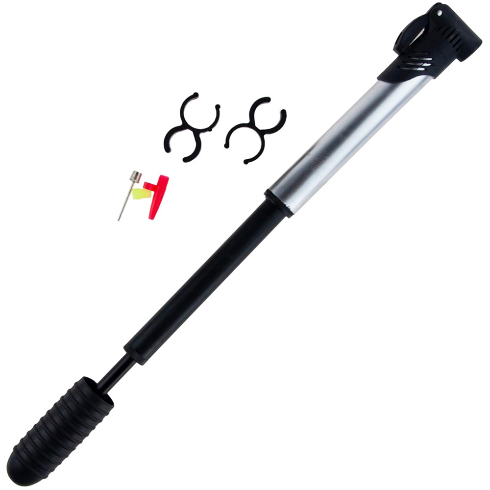 Комплектація: Насос, 3 насадки: для м’ячів, перехідник для ніпеля, голка для м’ячів, 2 тримачі на велосипед