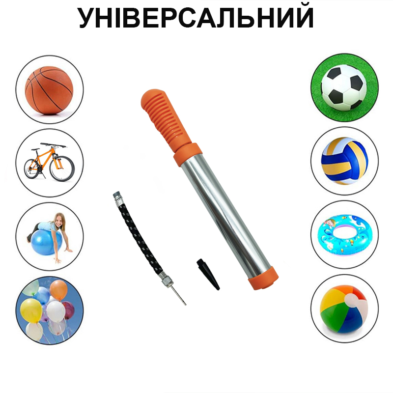 Комплектація: Насос зі шлангом, насадки: для м’ячів, надувних виробів
