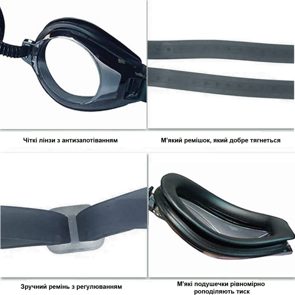 Окуляри мають захист від ультрафіолетових променів, якісні HD лінзи з антизапотіванням, що допомагає підтримувати ясний зір навіть під час інтенсивного плавання.