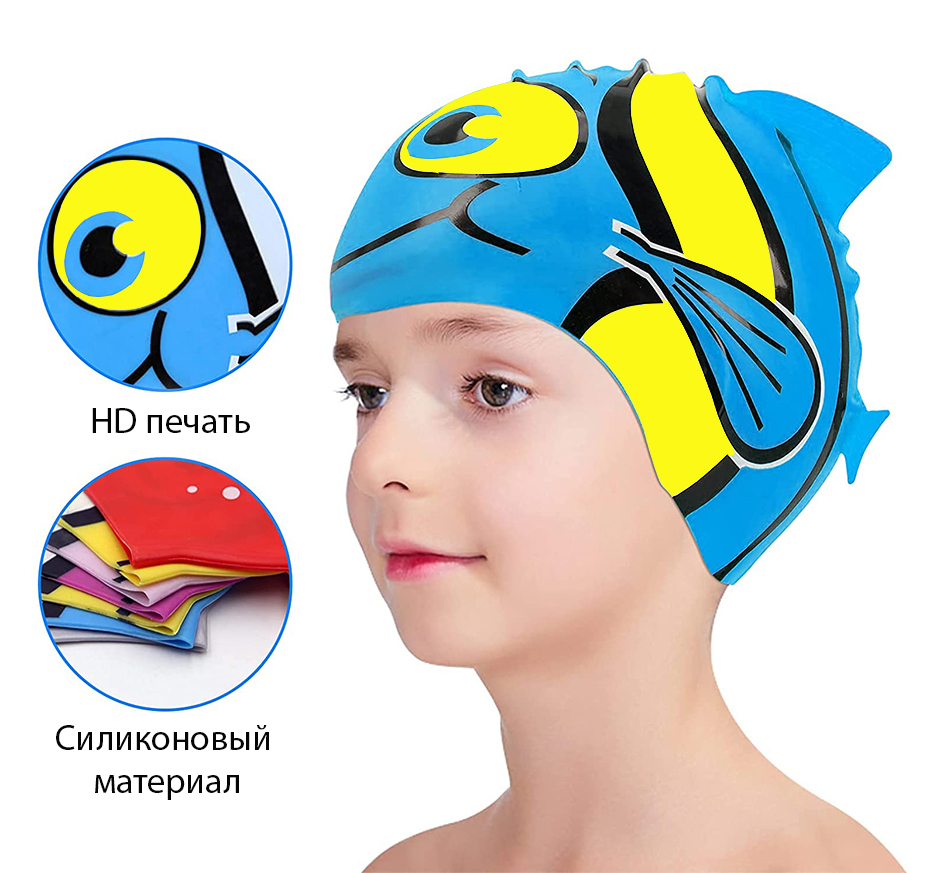 На шапочці нанесений 3D-дизайн у формі риби з милим принтом, що робить її більш анімованою та забавною. Вона дуже гладка і зручна, зроблена з силіконового матеріалу преміум-класу, дуже еластична та м’яка, тому шапочка зручно сидить на голові вашої дитини. Зберігає волосся сухим, запобігаючи плаванню волосся в басейні.