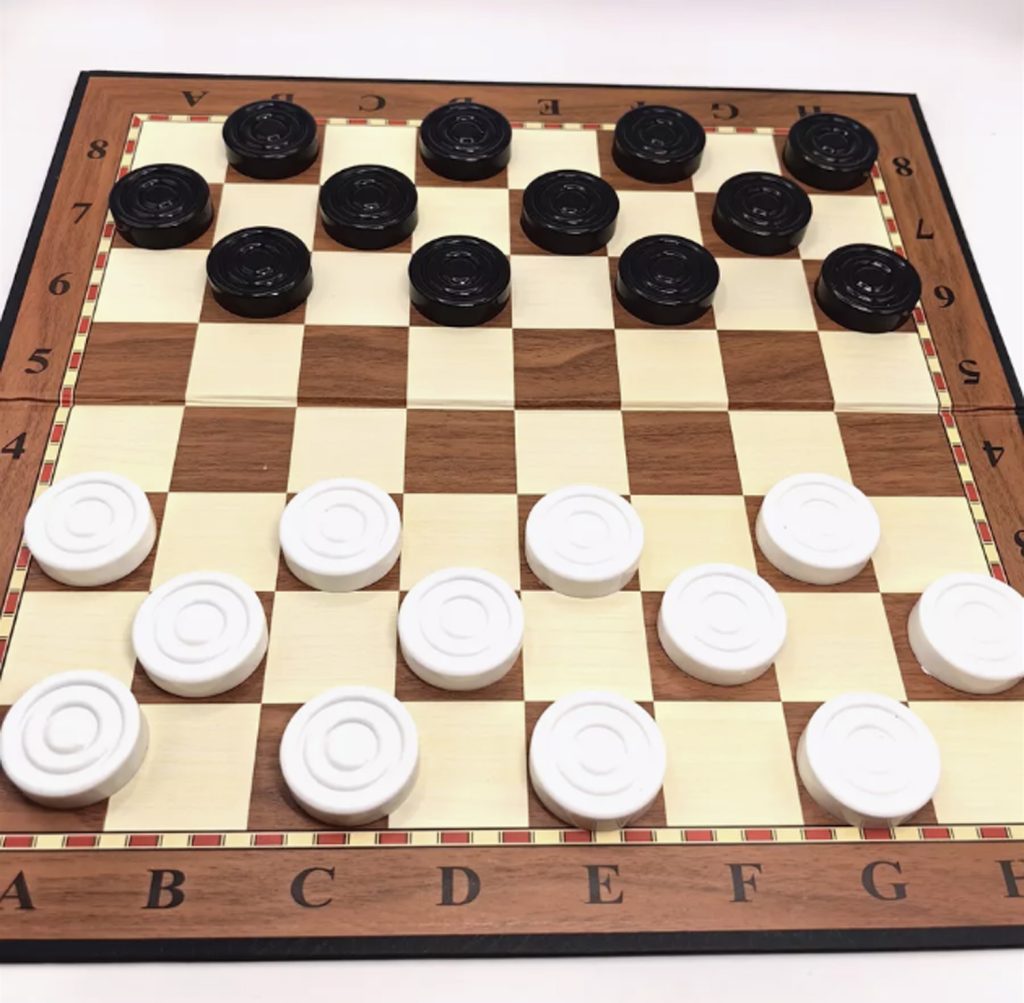 ✅ Класичний дизайн – шашки стандартного розміру (Ø 2,9 см, товщина 1 см)