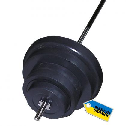 Комплектація: Гриф прямий 180 см, диски 15 кг – 2 шт., 10 кг – 2 шт., 5 кг – 2 шт., 2,5 кг – 2 шт.