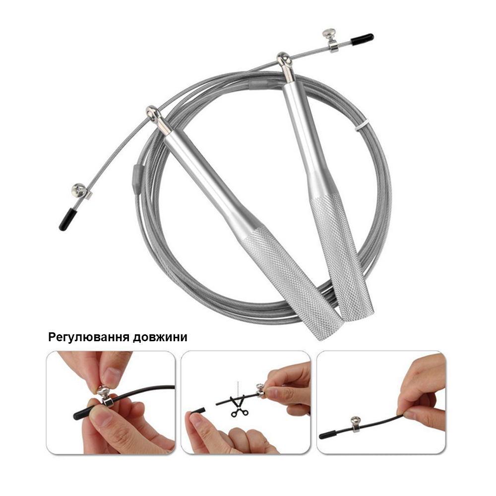Регульований трос, виготовлений із металу+ПВХ, дає змогу відрегулювати стрибалку під зріст користувача, незалежно від віку та статі.