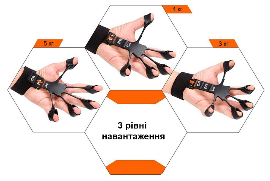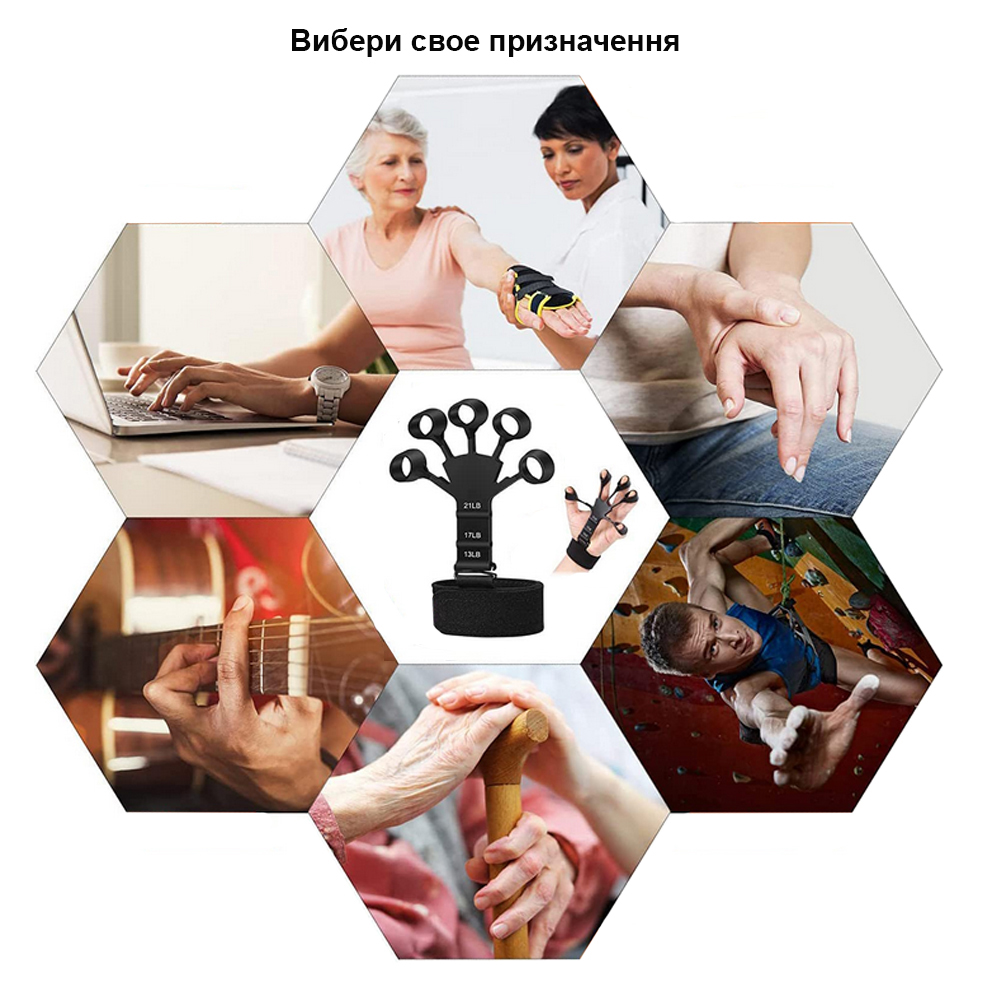 Тренажер призначений для використання під час тренувань, реабілітації або в якості щоденної вправи для зміцнення рук і пальців. Тренажер допомагає розвинути силу та гнучкість пальців, покращує моторику рук, координацію рухів і загальну витривалість.