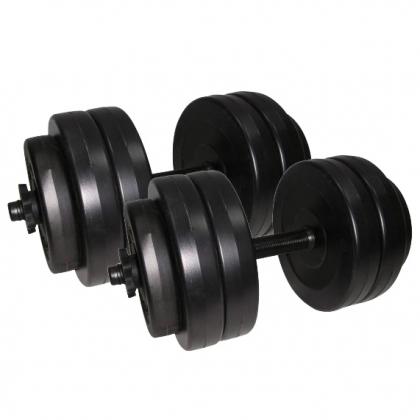 Материалы: диски – кевларобетон, покрытие — пластик ABS, грифы – металопластик с резиновой ручкой.