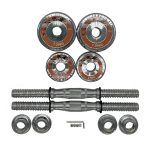 • Грифы с фиксаторами: К набору прилагаются два хромированных грифа с фиксаторами. Грифы имеют эргономичную форму, обеспечивающую надежное сцепление и комфортное использование. Фиксаторы позволяют быстро и легко закрепить диски на грифе, гарантируя безопасность и стабильность во время тренировок.