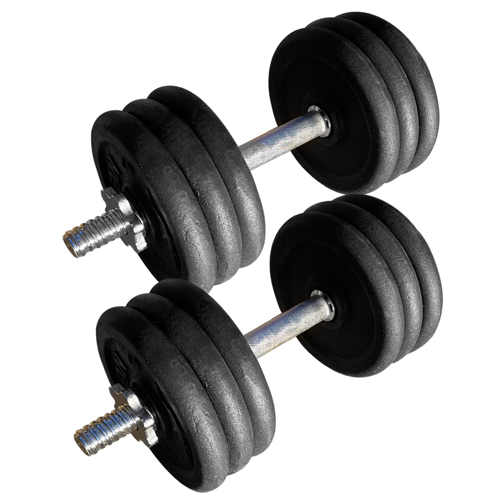 Комплектация: 2 грифа длиной 40 см, 4 гайки; 12 дисков по 3 кг