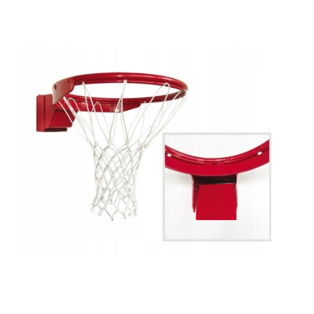 Кольцо баскетбольное амортизационное Newt 450 мм NE-CM-09 — стандартное баскетбольное кольцо, в отличии от обычных моделей изготавливается из металлического прута (не трубы) 16 мм, что дает кольцу выдерживать сильные нагрузки. Также в данном кольце усилено основание упор. Цвет изделия стандартный — красный. Сетка на баскетбольное кольцо крепится при помощи в специальные пазы с помощью троса. Устанавливается на щиты при помощи болтов. На данное кольцо можно свободно вешаться, оно выдерживает высокие нагрузки. Можно использовать для тренировок и соревнований