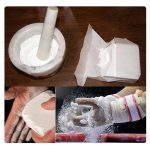 Тальк спрессован в брикет и упакован в плотную бумагу. Им удобно пользоваться — просто провести по брикету ладонями, а затем потереть их друг друга. Как вариант, брикет можно измельчить и пересыпать тальк в удобную емкость.