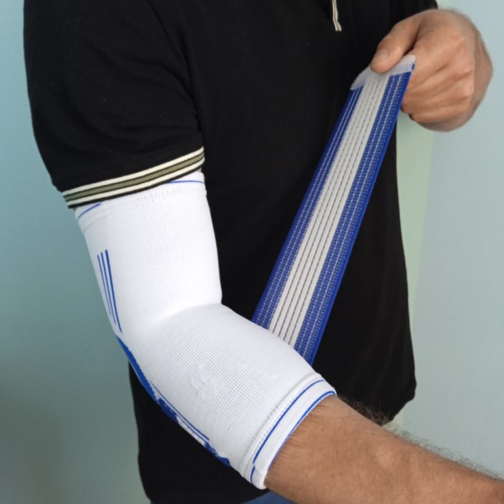 Налокотник (бандаж для локтя) с фиксатором Newt SBT Elbow Support NE-LB-83 — это универсальный аксессуар для надежной поддержки и стабилизации локтевого сустава. Благодаря дополнительному фиксатору, он обеспечивает максимальную защиту и комфорт во время физических нагрузок или реабилитации. Элегантное бело-синее оформление придает бандажу стильный вид. Эффективная поддержка — обеспечивает необходимую компрессию для уменьшения боли и предотвращения травм, что делает его идеальным для занятий спортом или реабилитации.