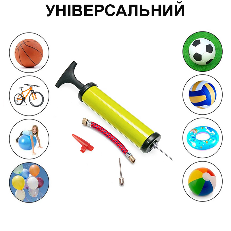 Комплектация: Насос, 2 насадки: для надувных изделий, игла для мячей
