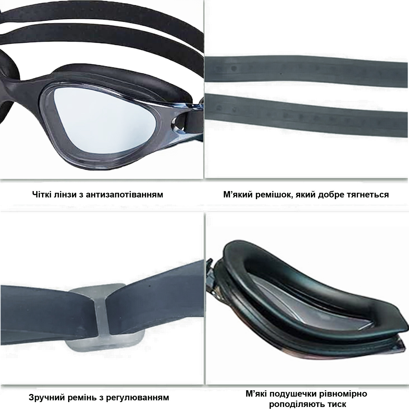 Эти очки подходят как для тренировок в бассейне, так и для активного отдыха на открытой воде, включая серфинг, каякинг и другие виды водных спортов. С регулируемым ремешком они легко настраиваются для идеальной посадки и комфорта во время плавания.