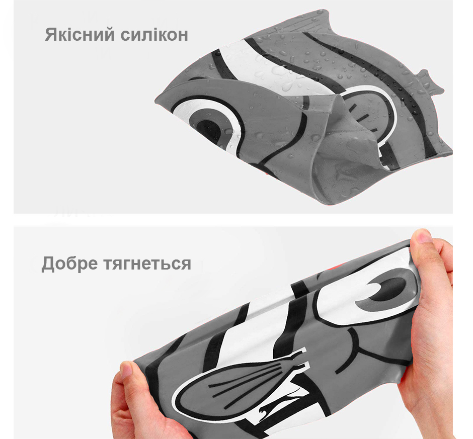 На шапочке нанесен 3D-дизайн в форме рыбы с мультяшным принтом, что делает ее более анимированной и забавной. Она очень гладкая и удобная, сделана из силиконового материала премиум-класса, очень эластичная и мягкая, поэтому шапочка удобно сидит на голове вашего ребенка. Сохраняет волосы сухими, предотвращая плавание волос в бассейне.