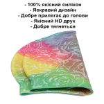 Для создания уникального дизайна использована качественная HD-печать, которая не выцветает и не стирается со временем, сохраняя яркие и насыщенные цвета. Шапочка также хорошо тянется, что обеспечивает комфортное и точное прилегание к голове, минимизируя возможность протекания воды во время плавания.