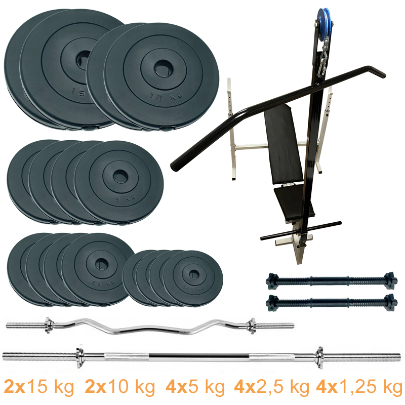 Скамья для жима с набором штанг и гантелей Newt ProGym Scott Plus Set Pro T 100 kg – универсальный силовой набор который подойдет как новичку, так и профессионалам. В состав набора входят различные грифы (W- образный гриф, прямой гриф и гантельные грифы) и различные диски, благодаря чему Ваши тренировки станут еще эффективнее! Собирайте гантели или штангу с удобной для вас весом!