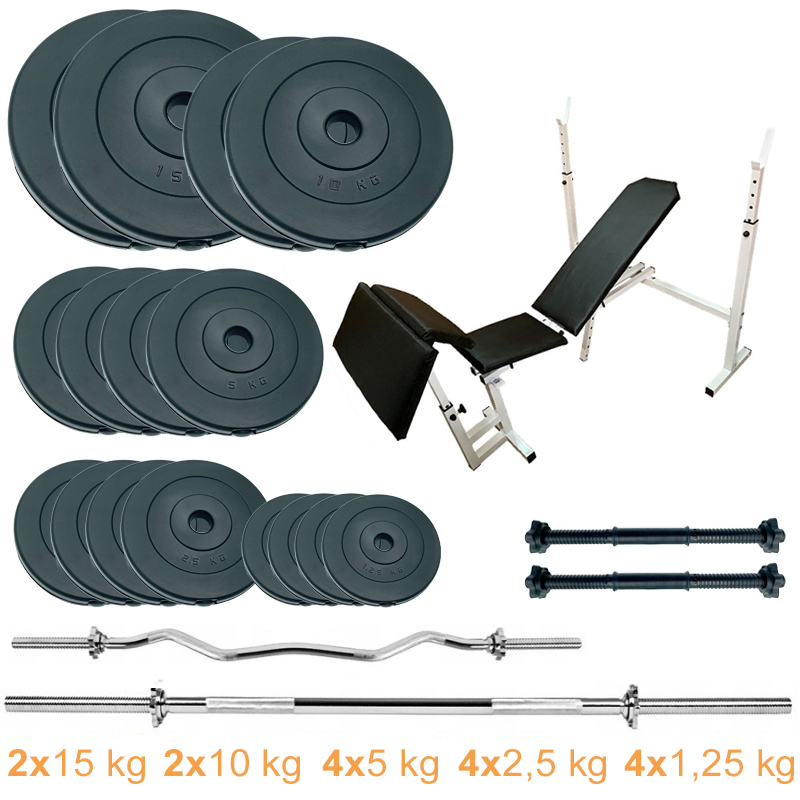 Скамья для жима с набором штанг и гантелей Newt ProGym Scott Set Pro 100 kg – универсальный силовой набор который подойдет как новичку, так и профессионалам. В состав набора входят различные грифы (W- образный гриф, прямой гриф и гантельные грифы) и различные диски, благодаря чему Ваши тренировки станут еще эффективнее! Собирайте гантели или штангу с удобной для вас весом! Диски в наборе идут полностью композитные с противоударным пластиком. Грифы изготовлены из качественных материалов, оснащены гайками “Вейдера”, для быстрой и безопасной фиксации блинов на грифе.