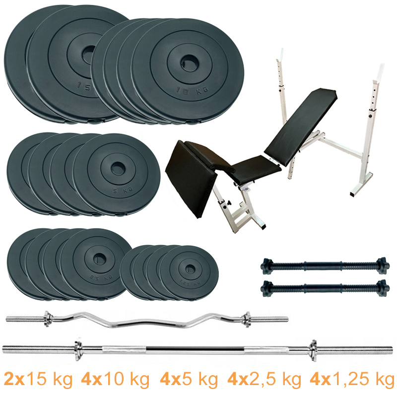 Скамья для жима с набором штанг и гантелей Newt ProGym Scott Set Pro 120 kg – универсальный силовой набор который подойдет как новичку, так и профессионалам. В состав набора входят различные грифы (W- образный гриф, прямой гриф и гантельные грифы) и различные диски, благодаря чему Ваши тренировки станут еще эффективнее! Собирайте гантели или штангу с удобной для вас весом! Диски в наборе идут полностью композитные с противоударным пластиком. Грифы изготовлены из качественных материалов, оснащены гайками “Вейдера”, для быстрой и безопасной фиксации блинов на грифе.