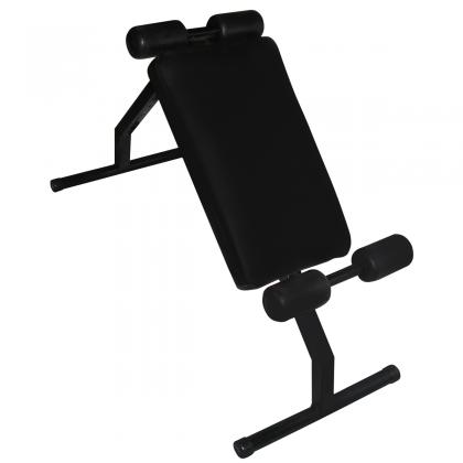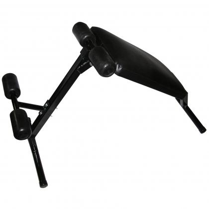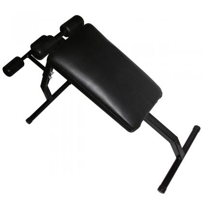Режим скамьи пресса, нагрузка приходится на мышцы брюшного пресса, а это главным образом прямые мышцы живота, косые мышцы живота, но при поворотах туловища возможно увеличить нагрузку, а также четырехглавая мышца бедра. Для того что бы переходить от упражнения на брюшной пресс к упражнению гиперэкстензия достаточно перенести прижимной валик для ног из одного положения в другое, валики крепятся на 2 болта к металлической раме. Процедура перенастройки занимает не более 30 секунд. Скамья имеет складную конструкцию, собирается быстро и в собранном виде занимает мало места. Конструкция устойчива, имеет широкие ножки, крепкий профиль, широкую спинку, валики изготовлены из прочного пенополиуретана, что в отличии от поролоновых валиков увеличит срок службы тренажера и делают упражнения более продуктивными. Поверхность скамьи прошита износостойким качественным кожзамом.