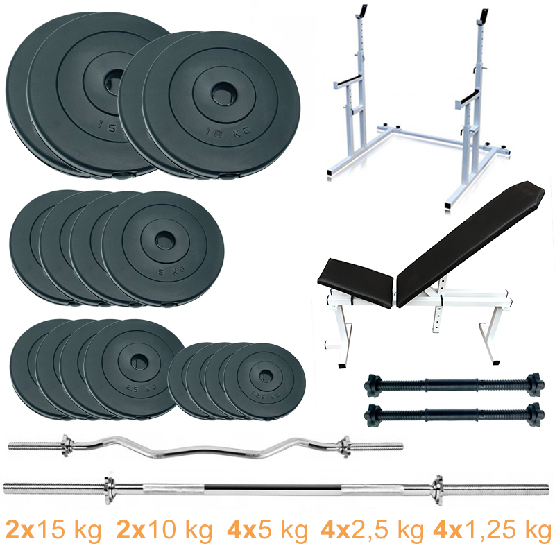 Скамья + стойки с набором штанг и гантелей Newt ProGym Set 100 kg – универсальный силовой набор который подойдет как новичку, так и профессионалам. В состав набора входят различные грифы (W- образный гриф, прямой гриф и гантельные грифы) и различные диски, благодаря чему Ваши тренировки станут еще эффективнее! Собирайте гантели или штангу с удобной для вас весом! Диски в наборе идут композитные. Грифы изготовлены из качественных материалов, оснащены гайками “Вейдера”, для быстрой и безопасной фиксации блинов на грифе.