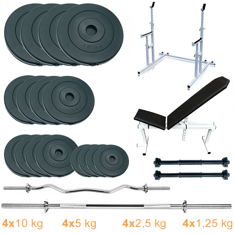 Скамья + стойки с набором штанг и гантелей Newt ProGym Set 90 kg – универсальный силовой набор который подойдет как новичку, так и профессионалам. В состав набора входят различные грифы (W- образный гриф, прямой гриф и гантельные грифы) и различные диски, благодаря чему Ваши тренировки станут еще эффективнее! Собирайте гантели или штангу с удобной для вас весом! Диски в наборе идут композитные. Грифы изготовлены из качественных материалов, оснащены гайками “Вейдера”, для быстрой и безопасной фиксации блинов на грифе.