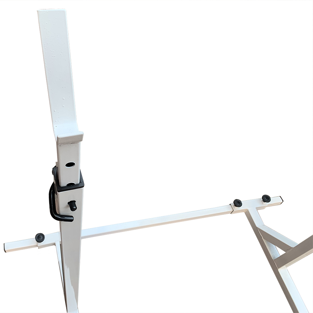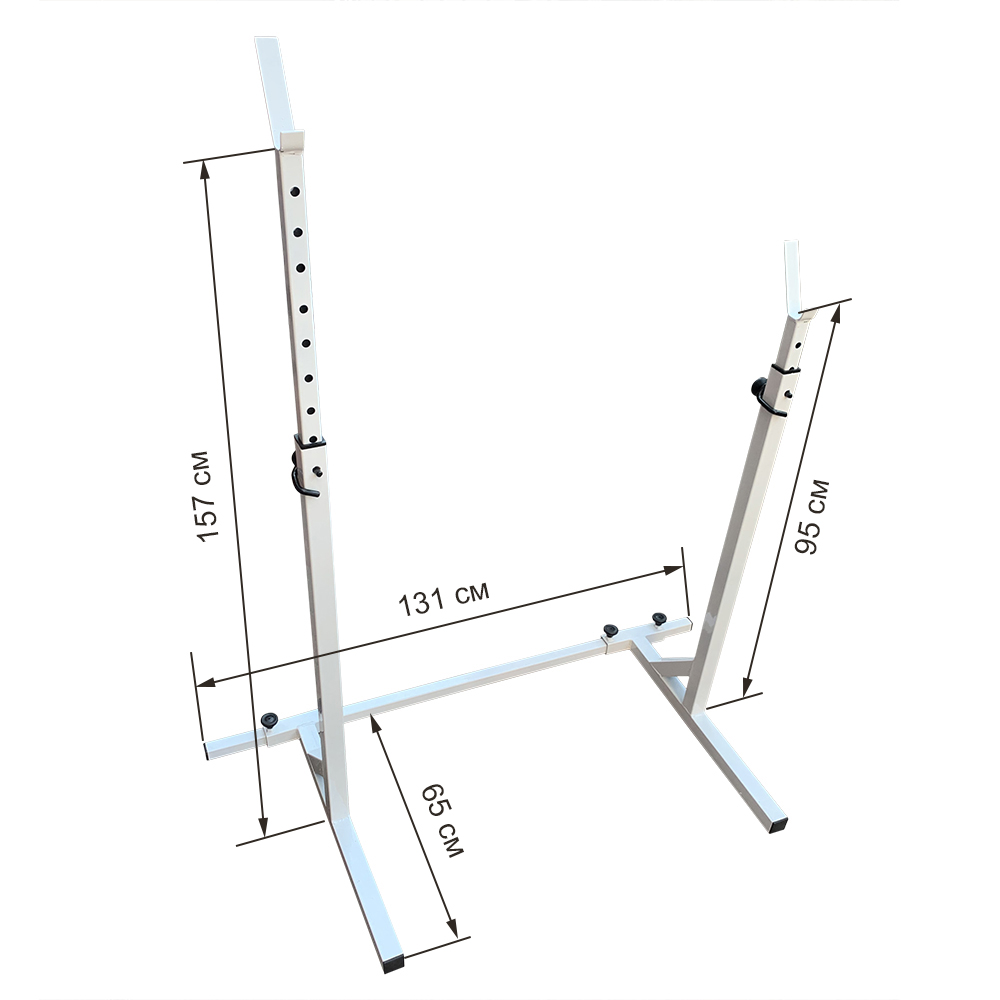 С помощью телескопического механизма штанга может быть размещена на высоту до 1570 мм. Это позволяет выполнять приседания со штангой, жимы лежа, сидя и под углом (при наличии универсальной скамьи), жимы стоя и т.д. Сверхпрочная стальная рамная конструкция с порошковым покрытием и компактные размеры гарантируют устойчивость тренажёра при проведении занятий.